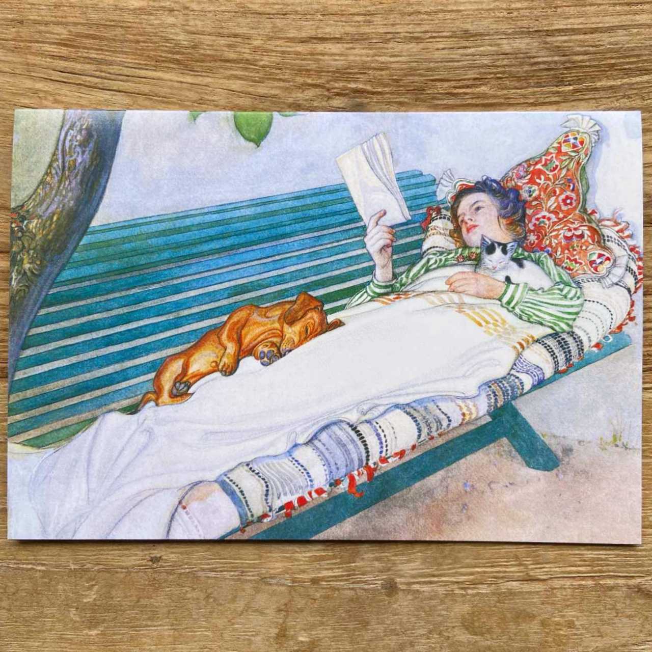 Carl Larsson Greeting Card - Woman Lying on a Bench